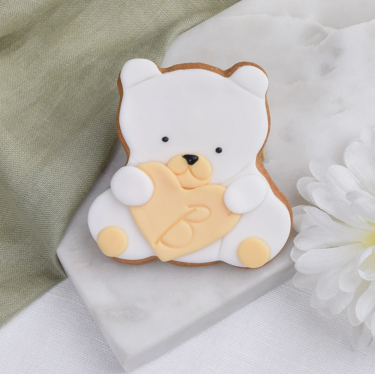 Biały Miś z beżowym serduszkiem i literką