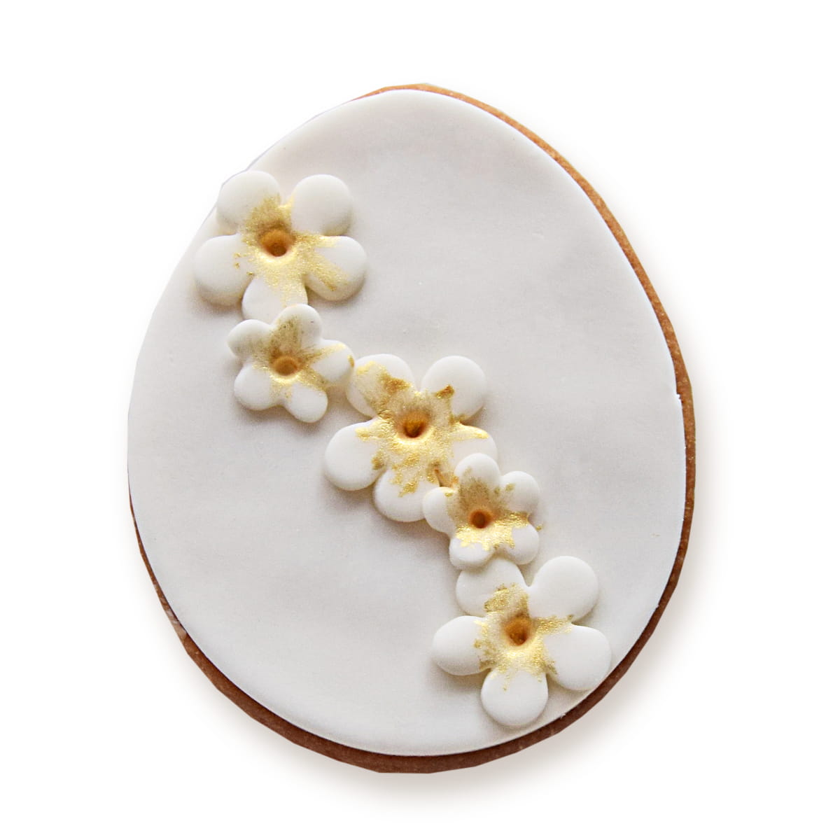 Ciastko lukrowane Jajko Białe ze złotymi kwiatkami