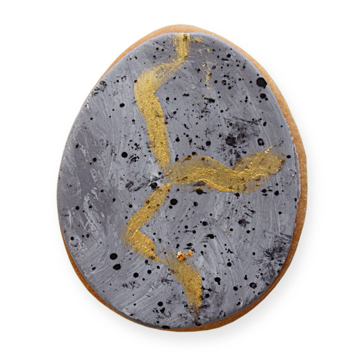 Ciastko lukrowane Jajko Stardut Szare ze złoto czarnym zdobieniem