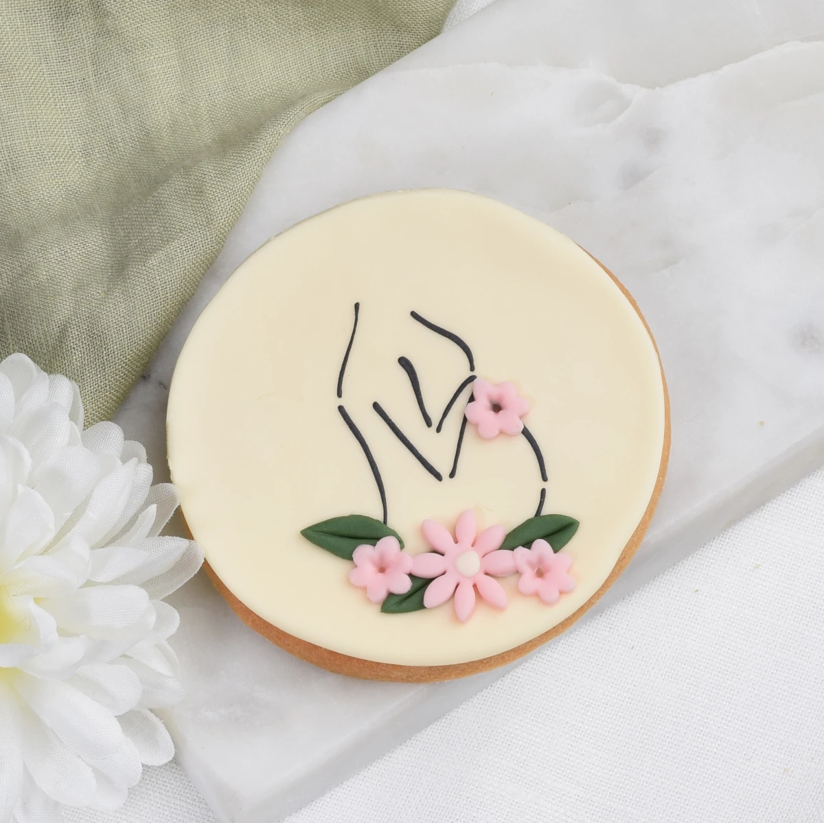 Pyszne, maślane ciasteczko, zdobione lukrem uroczym motywem kobiecej sylwetki z ciążowym brzuszkiem. Idealne ciasteczko na Baby Shower / Bociankowe. Ten wzór z pewnością wywoła uśmiech na twarzy przyszłej mamy! Ciasteczko będzie idealnym podziękowaniem dla gości albo piękną ozdobą stołu. Każde ciasteczko zapakowane jest oddzielnie w woreczek przewiązany lnianym sznureczkiem z dołączonym bilecikiem. Na bileciku umieścimy napis, który wskażesz spośród kilku naszych propozycji.