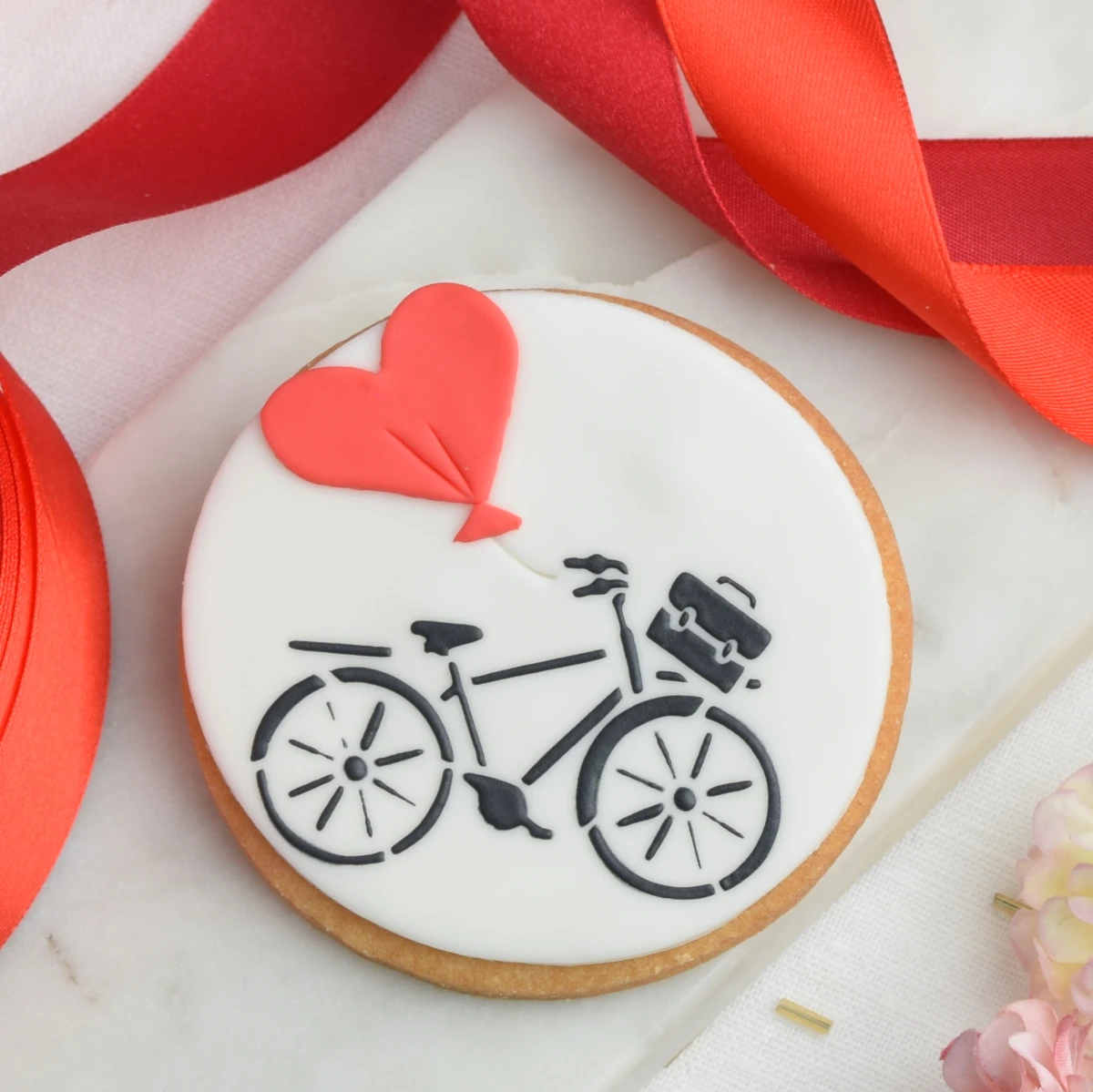 Urocze ciacho maślane z wylukrowanym rowerem i balonikiem w kształcie serca. To ciasteczko zachwyci każdego cyklistę (i nie tylko!). Super prezent na walentynki! Ciasteczko zapakowane w woreczek przewiązany lnianym sznureczkiem z dodanym bilecikiem na który możesz wybrać tekst spośród kilku naszych propozycji.