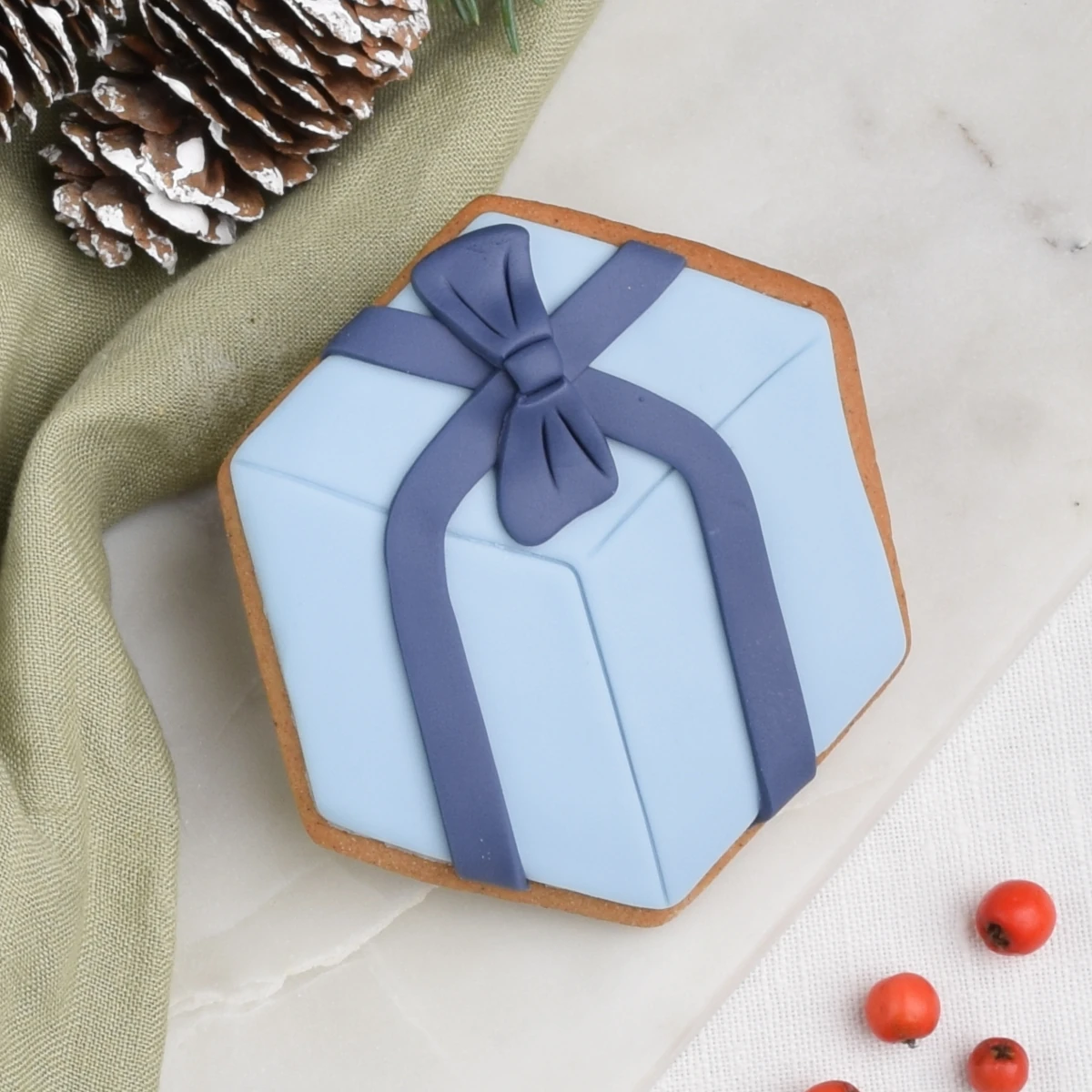 Jak święta to i prezenty! To ciasteczko w kształcie starannie zapakowanego prezentu to urocza dekoracja stołu lub fajne uzupełnienie świątecznych wysyłek kreatywnych dla ulubionych influencerek. Prezenty pięknie komponują się z naszymi choinkami i innymi bożonarodzeniowymi propozycjami.