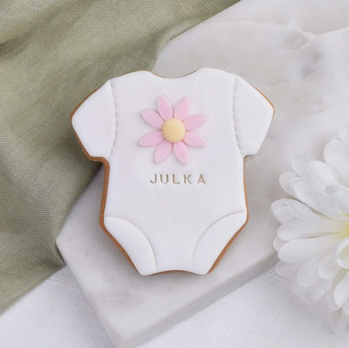 Najbardziej klasyczne ciasteczko na Baby shower na świecie! Pyszne, maślane, obłożone lukrem w pastelowym kolorze. To ciasteczko w kształcie dziecięcego bodziaka będzie idealnym podziękowaniem dla gościń na Baby Shower lub gości na uroczystości z okazji chrztu. Na ciasteczku możesz umieścić własny tekst np. imię dziecka, datę uroczystości lub słodkie "oh baby". Co tylko chcesz. Każde ciasteczko pakujemy oddzielnie w woreczek, przewiązujemy lnianym sznureczkiem i dodajemy bilecik do personalizacji. Umieścimy tam wskazany przez Ciebie tekst (masz kilka propozycji do wyboru).