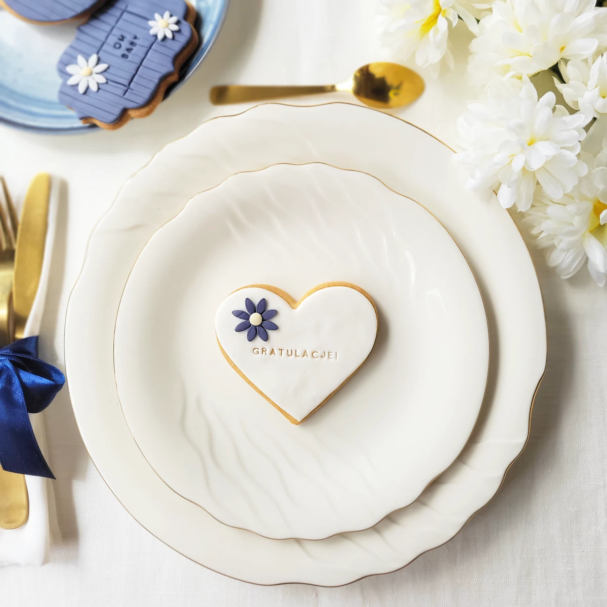 Ciastko lukrowane Serce Białe Granatowy Kwiatek Daisy