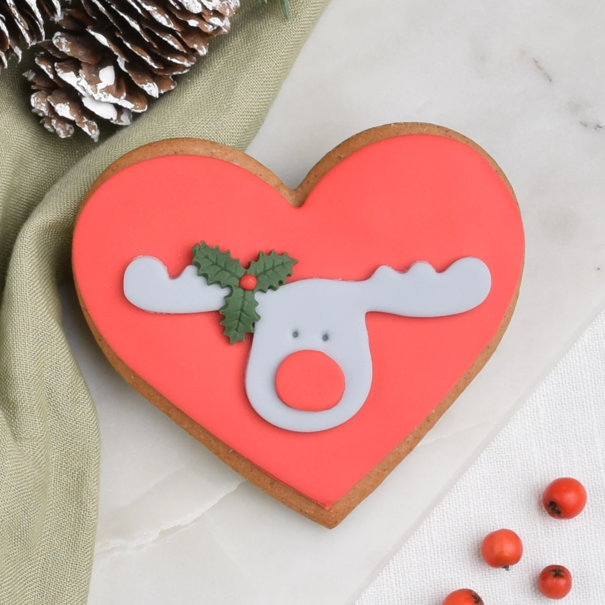 Ciastko lukrowane Serce z głową renifera