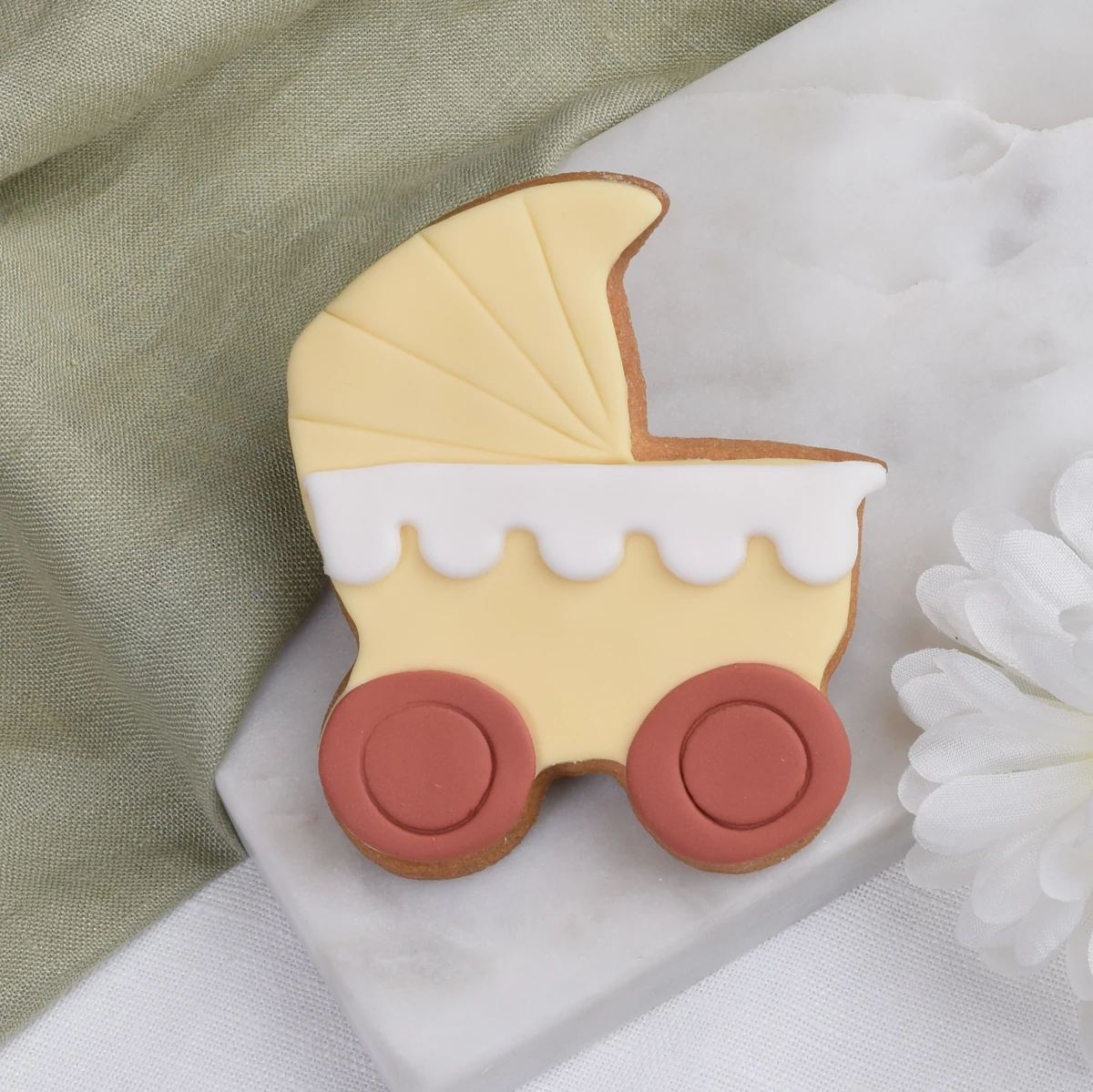 Najbardziej klasyczne ciasteczko na Baby shower na świecie! Pyszne, maślane, obłożone lukrem w pastelowym kolorze. To ciasteczko w kształcie dziecięcego wózka będzie idealnym podziękowaniem dla gościń na Baby Shower lub gości na uroczystości z okazji chrztu. Każde ciasteczko pakujemy oddzielnie w woreczek, przewiązujemy lnianym sznureczkiem i dodajemy bilecik do personalizacji. Umieścimy tam wskazany przez Ciebie tekst (masz kilka propozycji do wyboru).