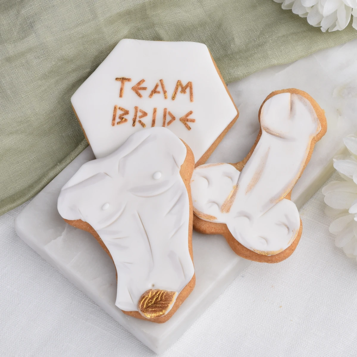 Zestaw trzech ciasteczek na wieczór panieński w niebanalnej odsłonie! Tworząc go chciałam nawiązać do roznegliżowanych panów ale chciałam żeby nie było sztampowo. Niespodziewanie do głowy przyszła starożytność i piękne rzeźby przedstawiające muskularne ciała.... tak, myślę, że te ciastka idealnie sprawdzą się na każdym wieczorze Panieńskim! ;) Jeśli planujesz świętowanie ze swoim dziewczyńskim gangiem w plenerze to nawiązania do starożytnej Grecji czy rzymskich uczt będzie strzałem w dziesiątkę, a kuszące torsy i inne części ciała z pewnością zapewnią dobry humor ;) Możesz wybrać jeden z trzech tekstów do umieszczenia na ciastku z napisem :) Ciasteczka pakujemy w kraftowe pudełko z okienkiem o wymiarach 13/20/4 cm, są już gotowym do wręczania prezentem.