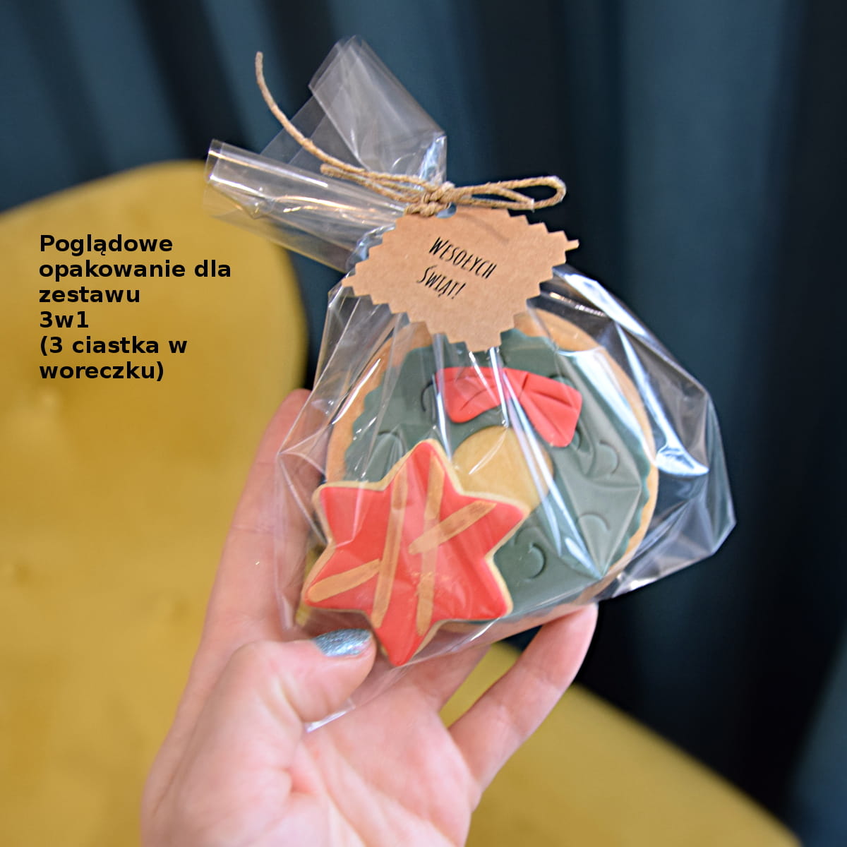 WAŻNE! Ciastko sprzedawane w zestawie (3szt) w liczbie stanowiącej wielokrotność 5 sztuk zestawów. Do koszyka możesz dodać 5, 15 itd. szt. Jeśli wybierzesz inną liczbę, do koszyka dodane zostaną ciastka w ilości najbliższej wielokrotności liczby 5 (licząc w górę). Każdy zestaw ciastek zapakowane jest osobno w woreczek. Podana powyżej cena dotyczy jednego zestawu ciastek. Jeśli ciastko jest personalizowane, na każdym z ciastek (kompletów) umieszczony zostanie ten sam tekst. Więcej informacji na ten temat w zakładce Jak działa sklep?