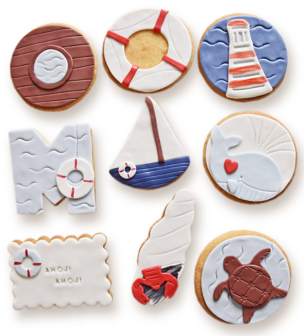 Zestaw lukrowanych ciasteczek z motywem morskim (9 sztuk)